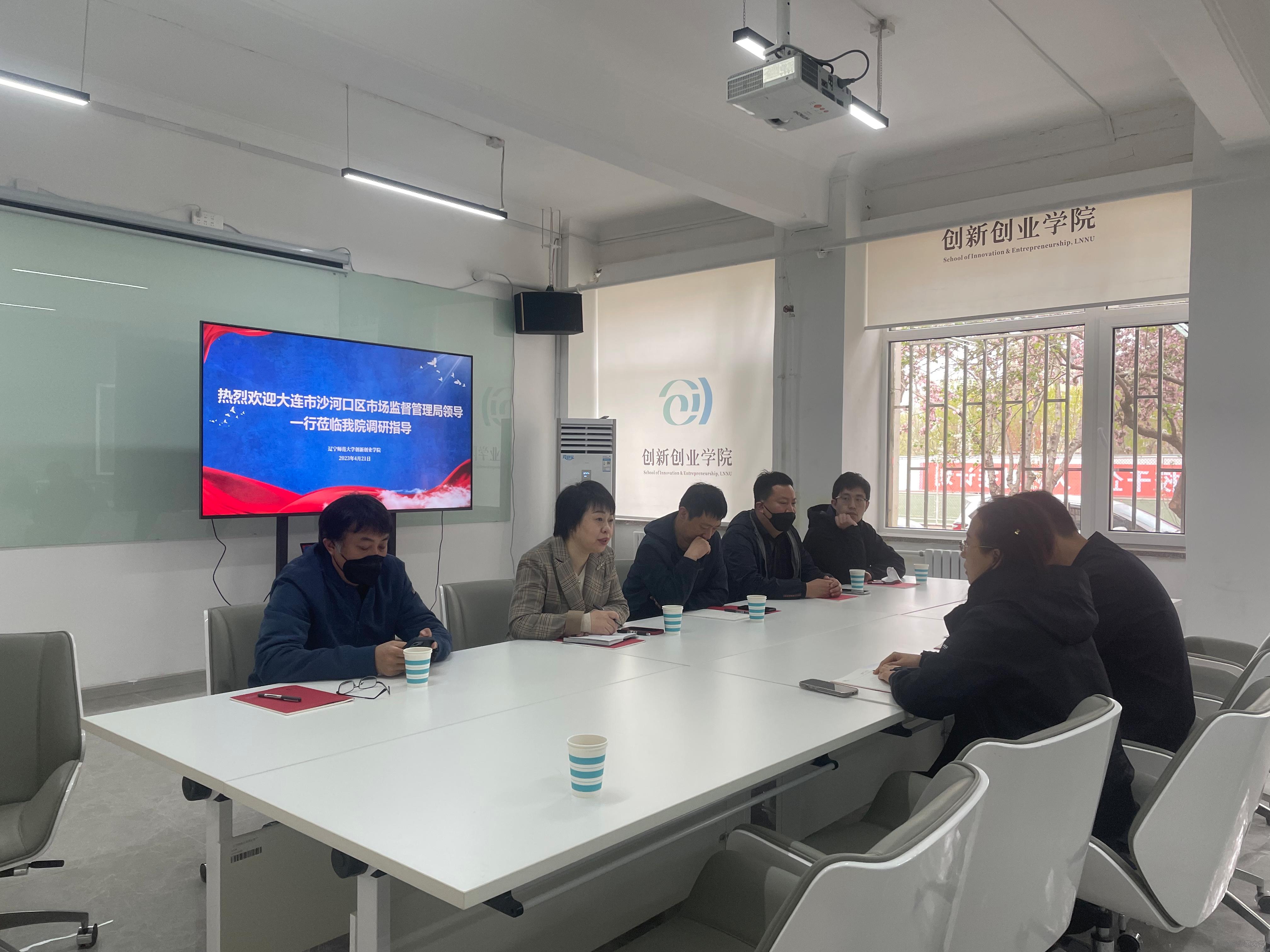 为提升在校大学生自主创业的便利化水平, 4月21日上午,沙河口区市场监督管理局注册许可科科长宋娟一行5人莅临我院,就实体公司注册、“双创”成果转化、创业项目孵化培育问题进行了深度洽谈。